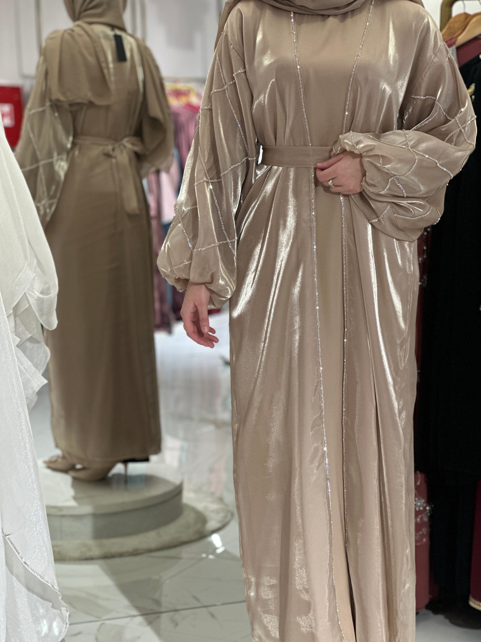 Za djevojku visine 180 cm, preporučena dužina abaje je oko 160 cm.