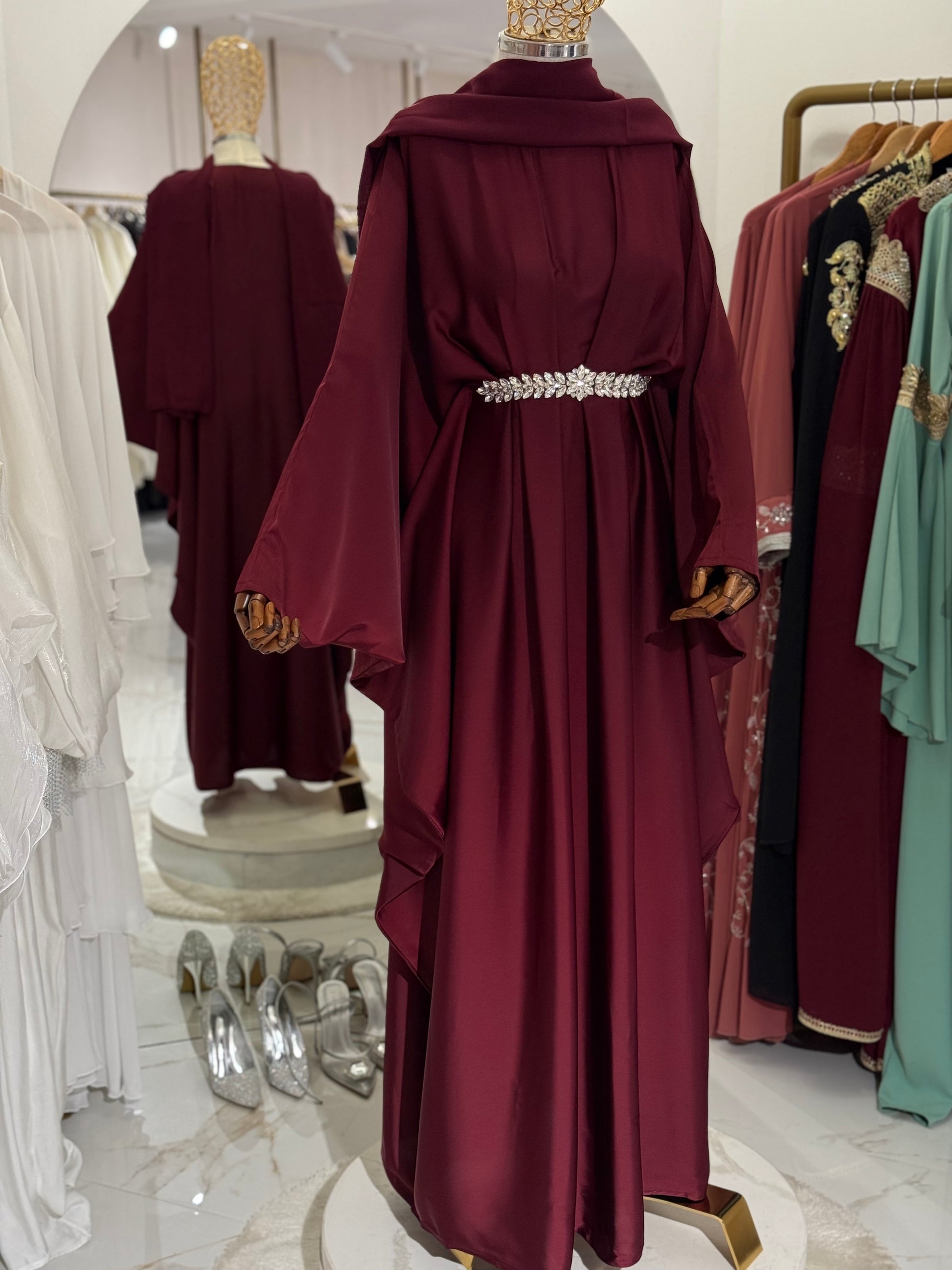 Za djevojku visine 180 cm, preporučena dužina abaje je oko 160 cm.