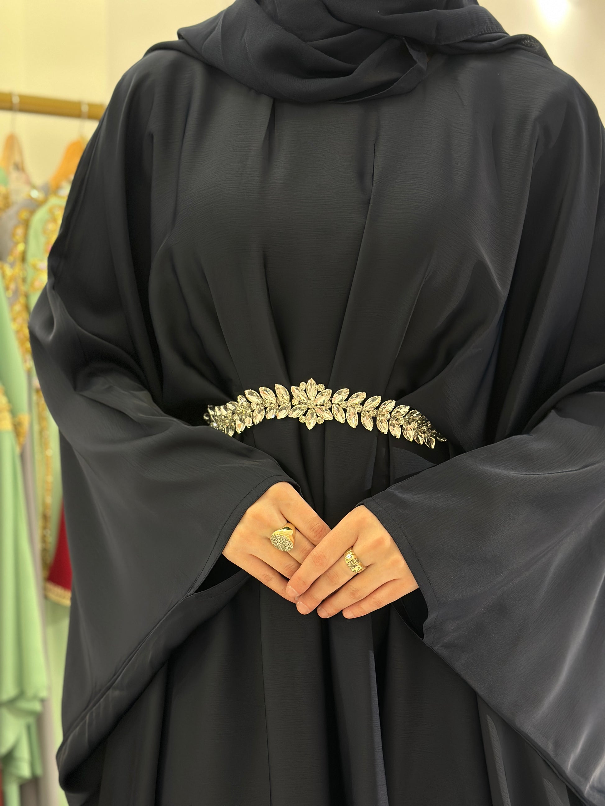 Sve naše abaje dolaze u univerzalnoj veličini, a veličina koja je navedena na etiketi odnosi se na arapsku veličinu, koja označava isključivo dužinu abaje, a ne širinu. Širina svih modela je približno ista i odgovara većini tjelesnih građa.