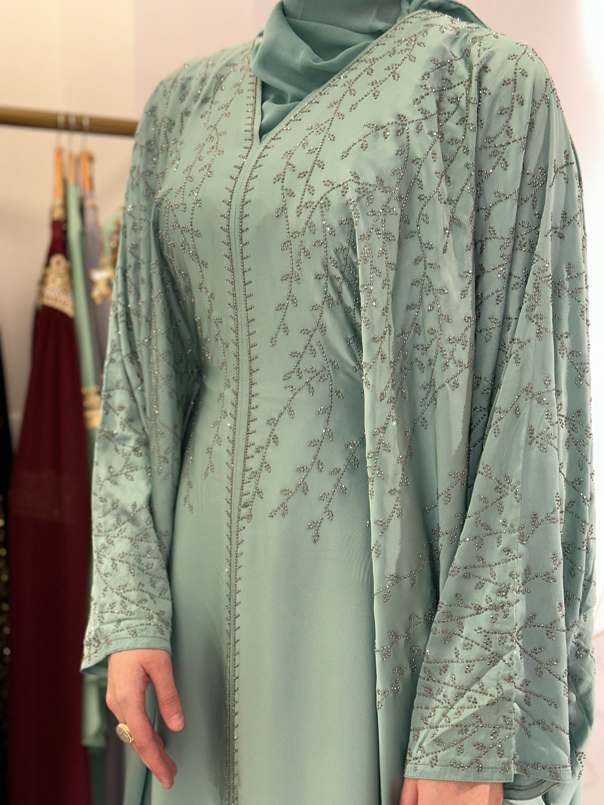 Za djevojku visine 180 cm, preporučena dužina abaje je oko 160 cm.