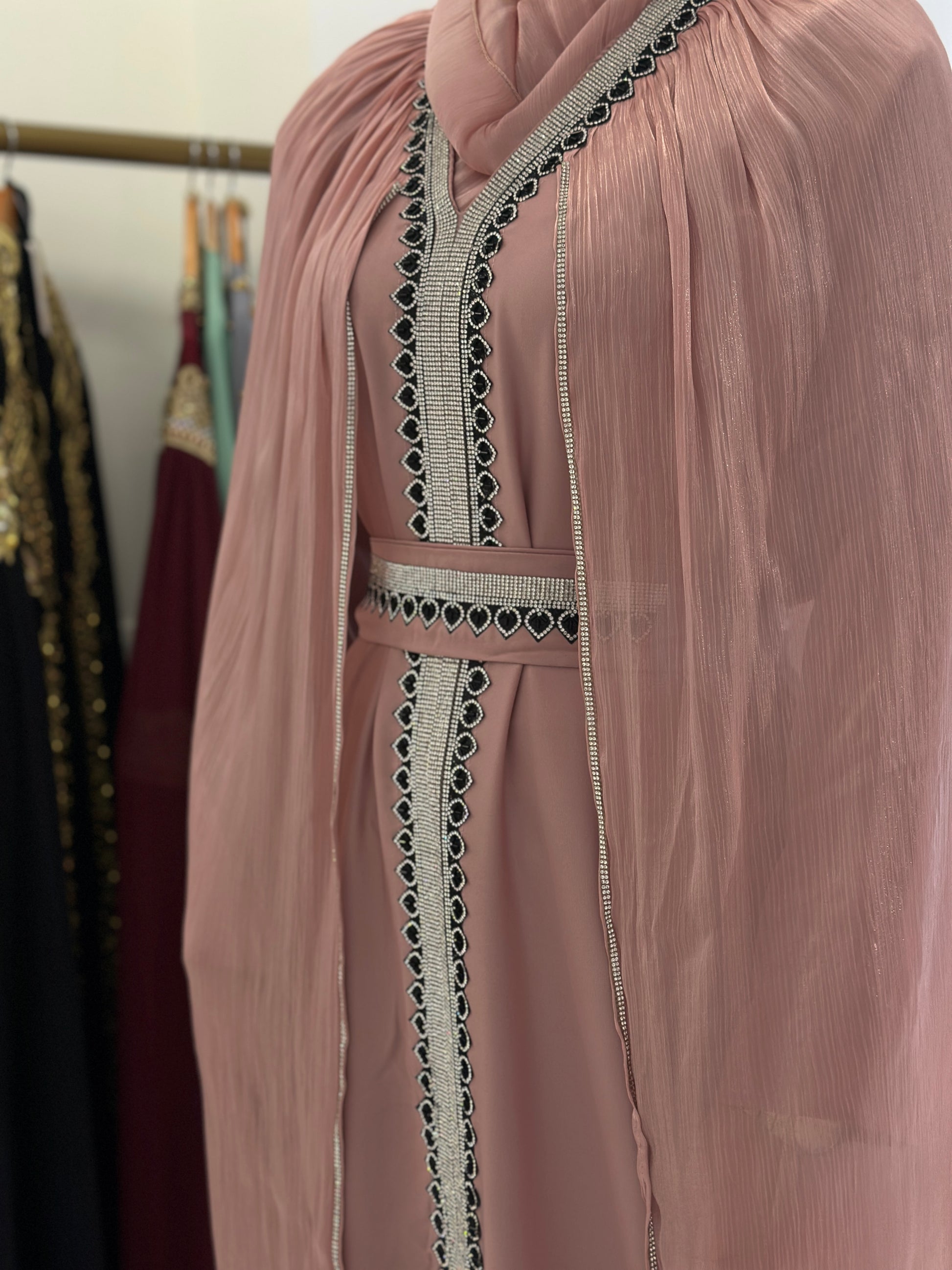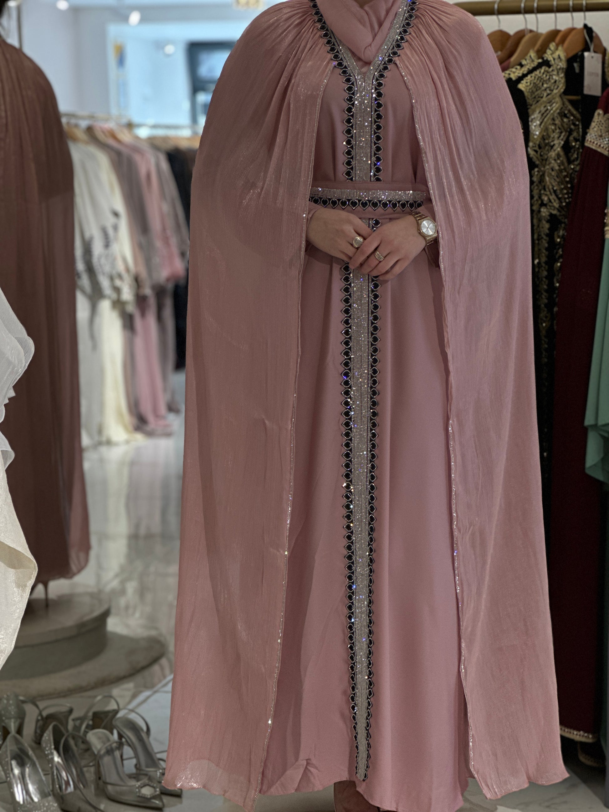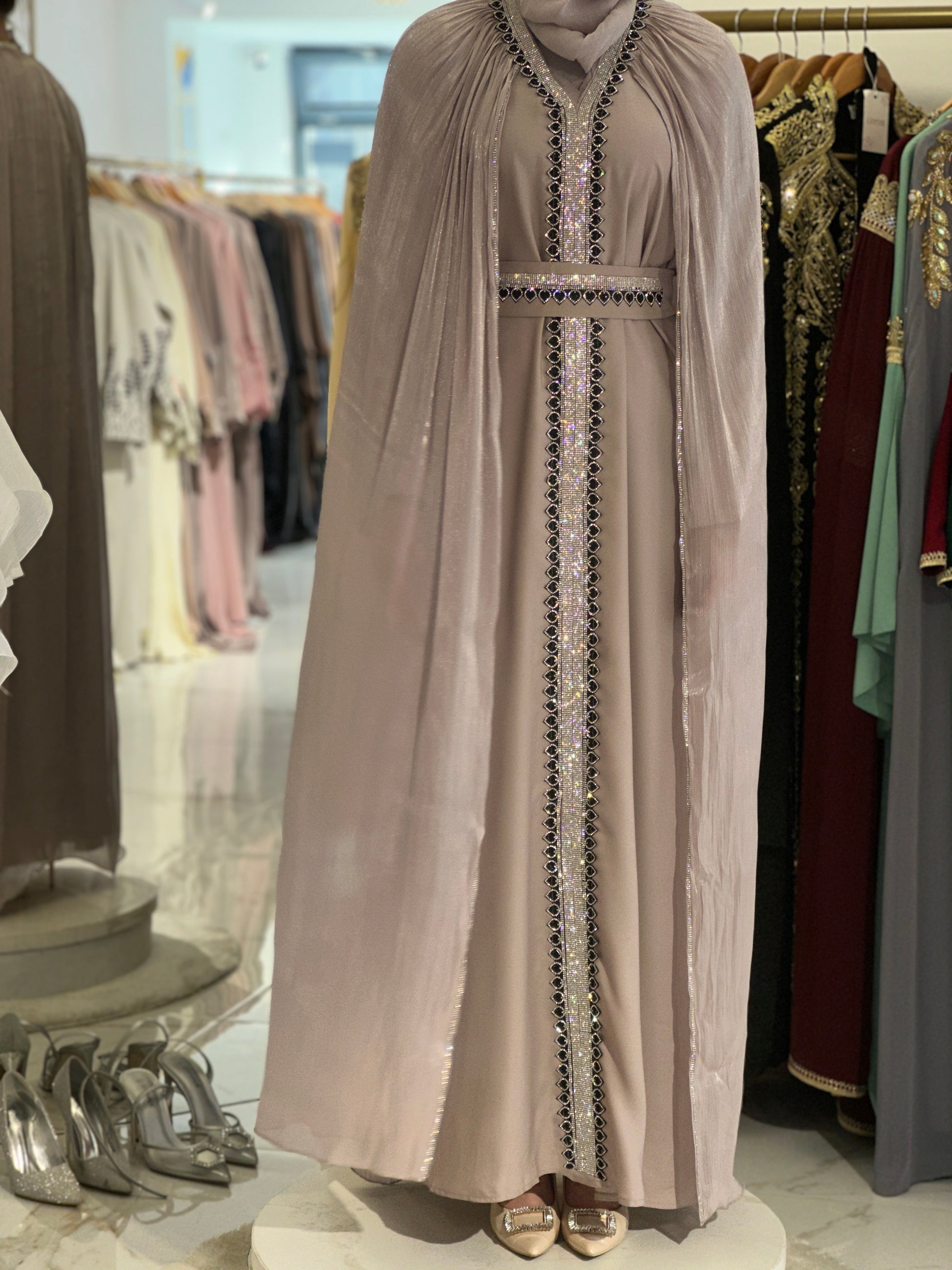 Za djevojku visine 180 cm, preporučena dužina abaje je oko 160 cm.
