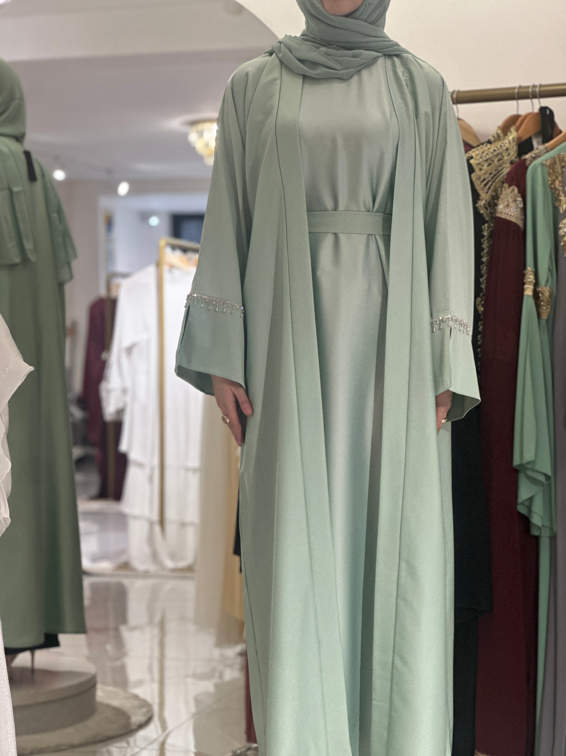 Za djevojku visine 180 cm, preporučena dužina abaje je oko 160 cm.