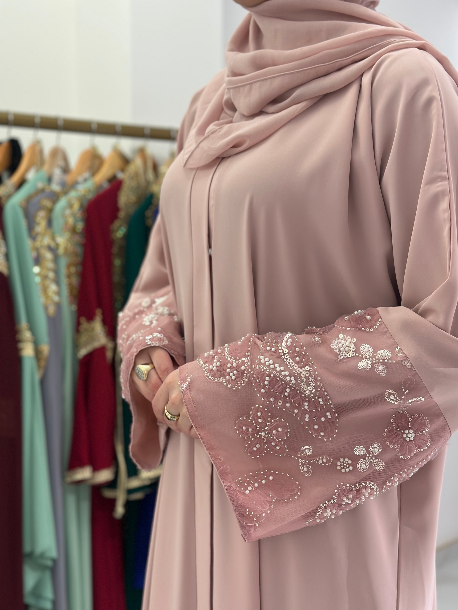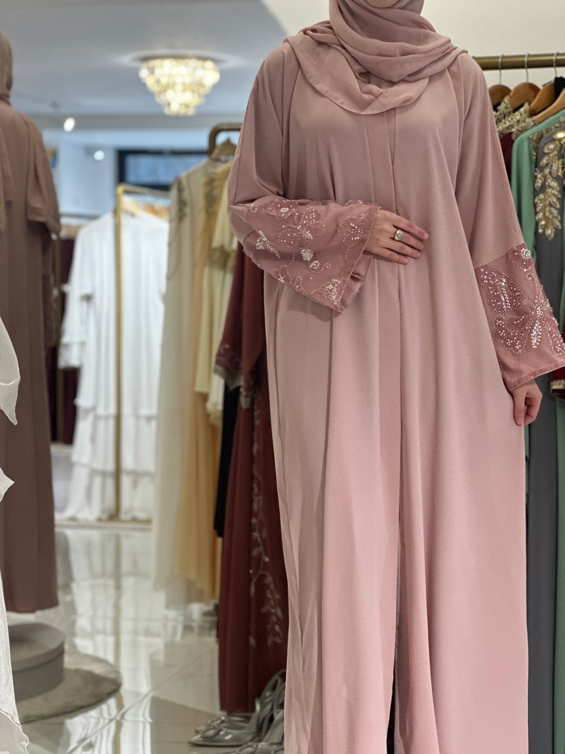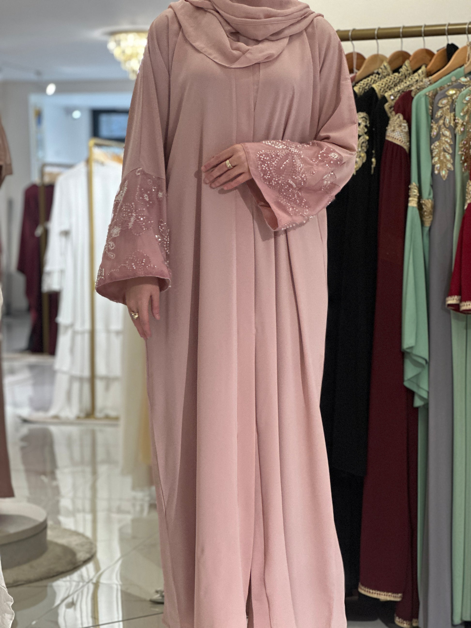 Za djevojku visine 180 cm, preporučena dužina abaje je oko 160 cm.